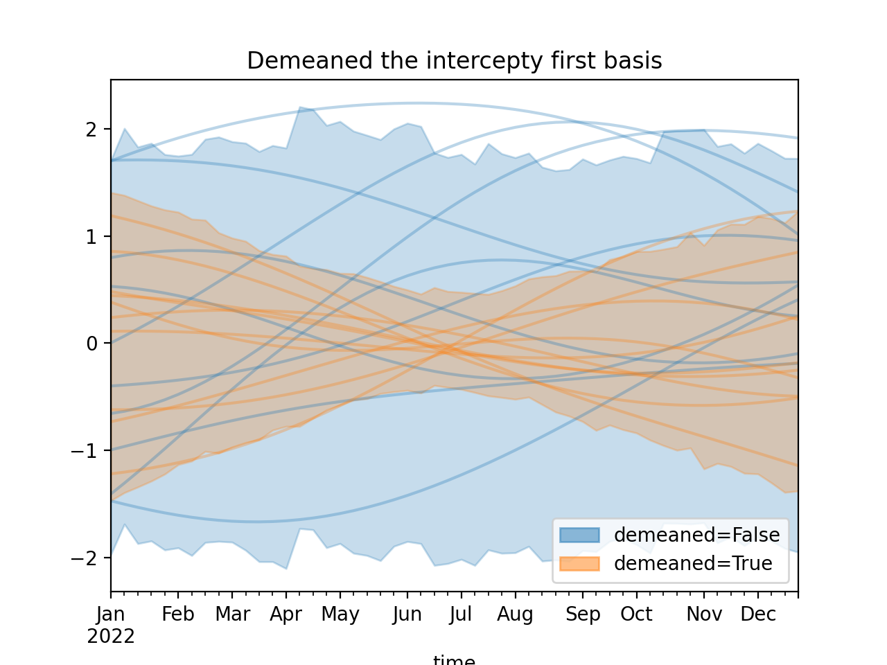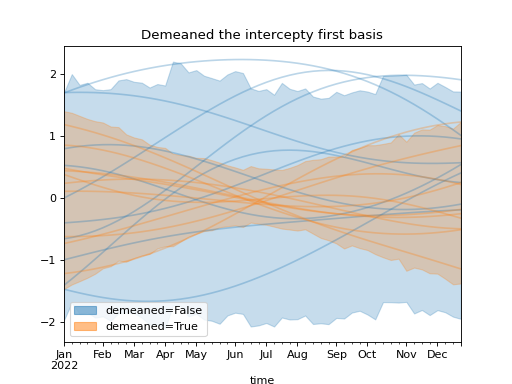 )Using a demeaned basis to remove “intercept” effect of first basis: